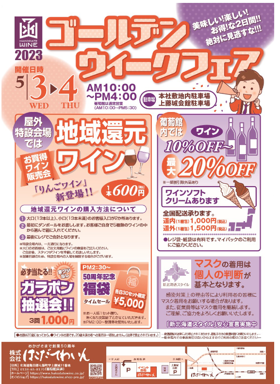 毎年恒例の、はこだてわいんのゴールデンウィークフェア。