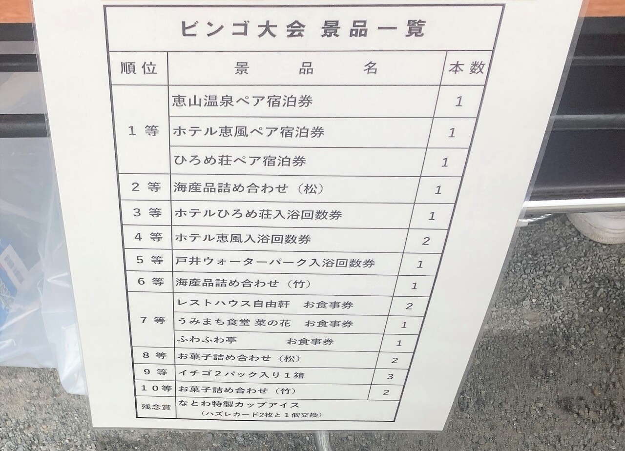 ハズレカード2枚で、なとわ特製カップアイスがもらえる。
