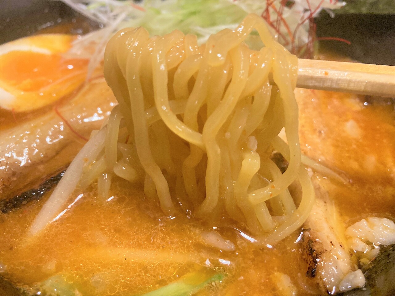 麺は、ゆるふわパーマのような ちぢれ麺。