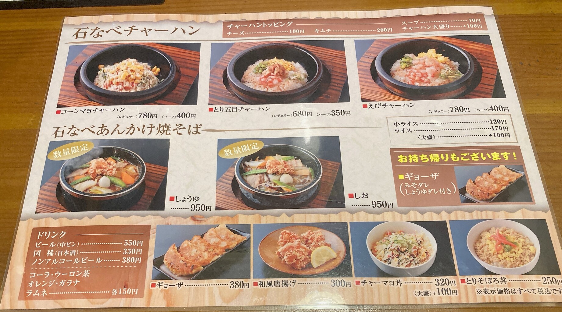 石なべメニュー。