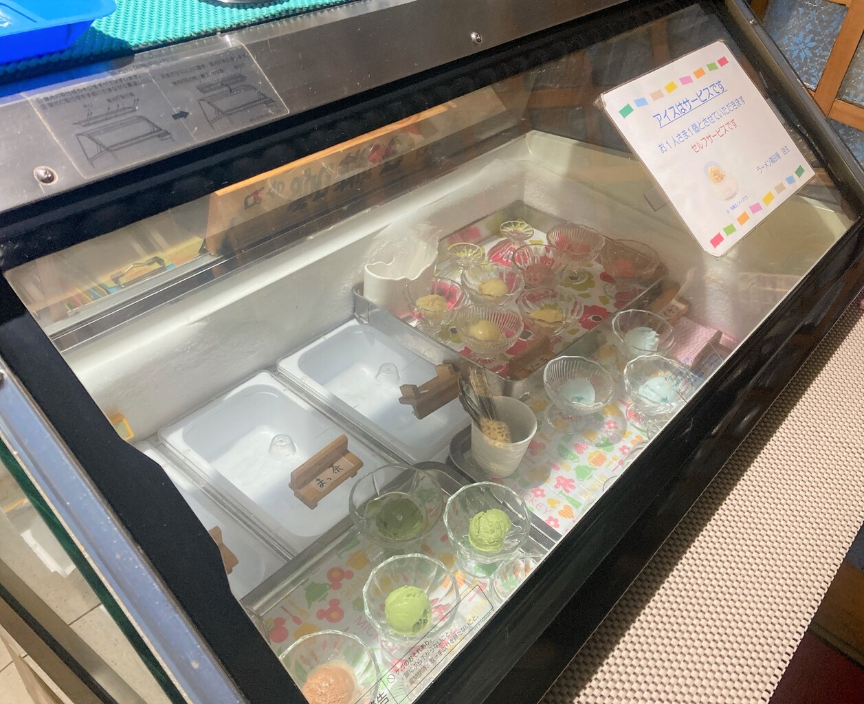 セルフサービスでアイスのサービスがある。