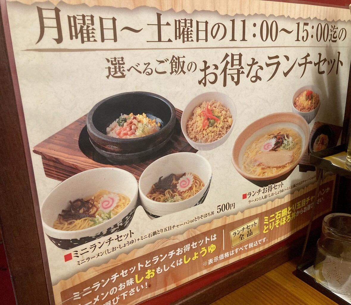 ランチセットは、月曜日~土曜日と書いてあるが、