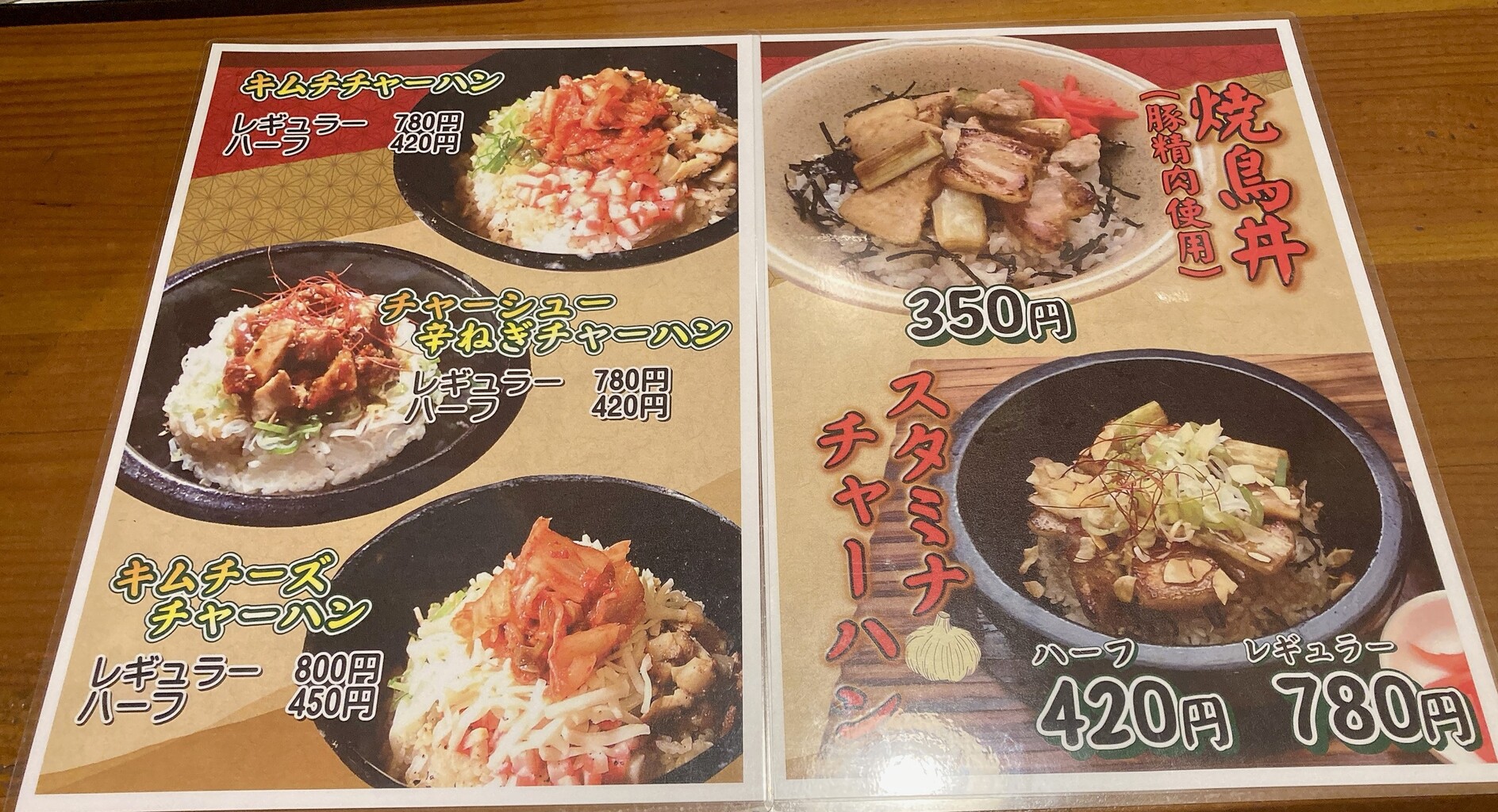 ご飯物メニュー。