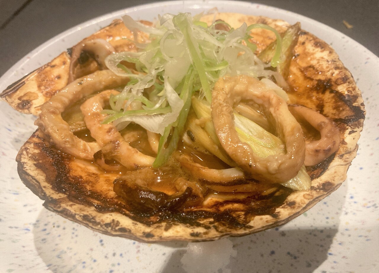今回はホタテ片貝を皿にしたスタイルで登場。