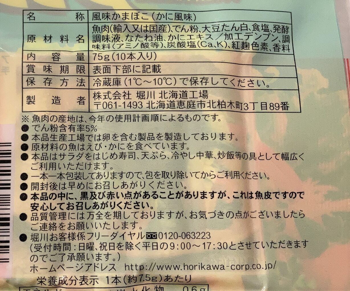 製造者は、堀川 北海道工場。