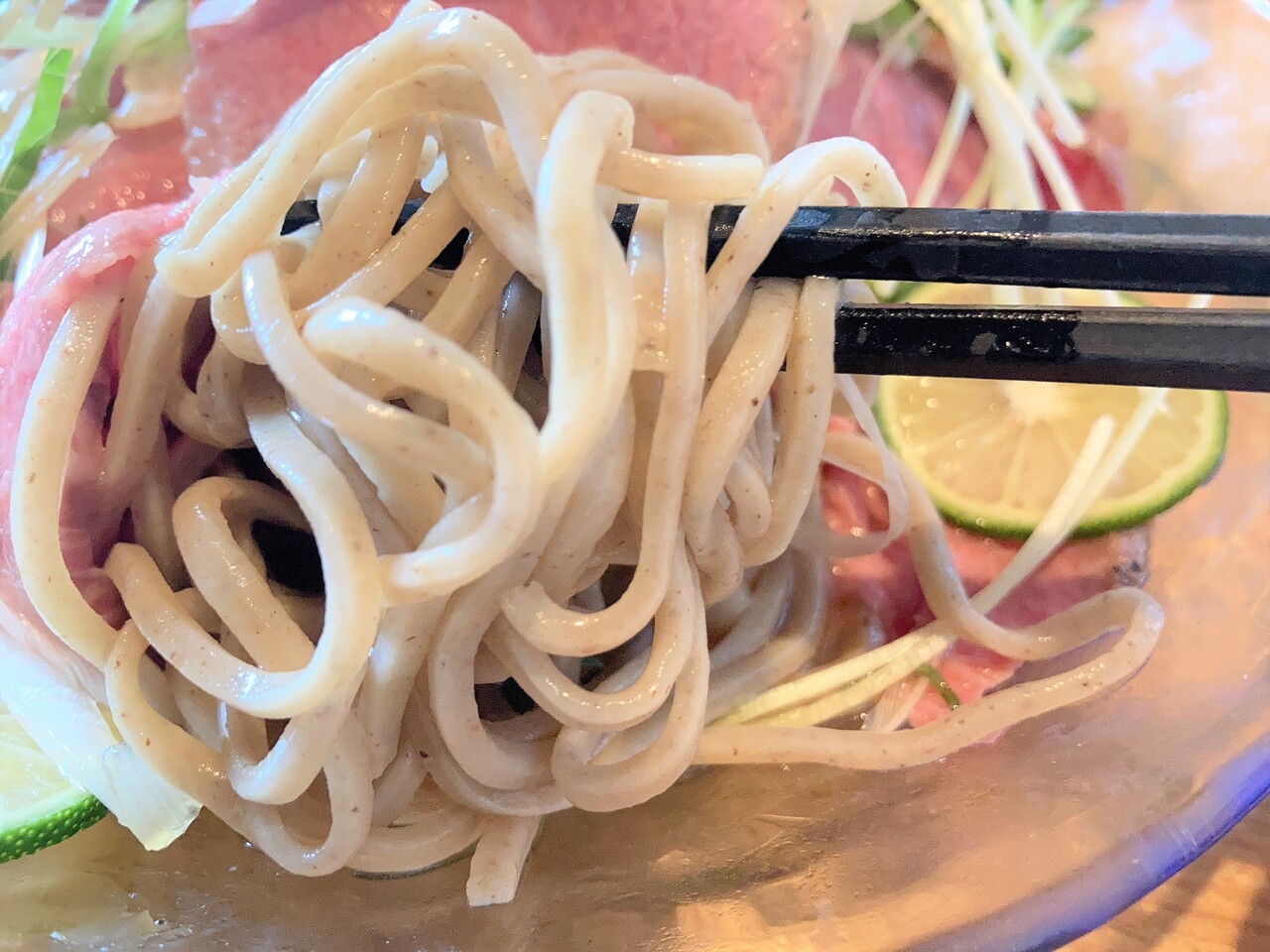 ローストビーフのぶっかけそば 1780円(税込)が堂々と到着。