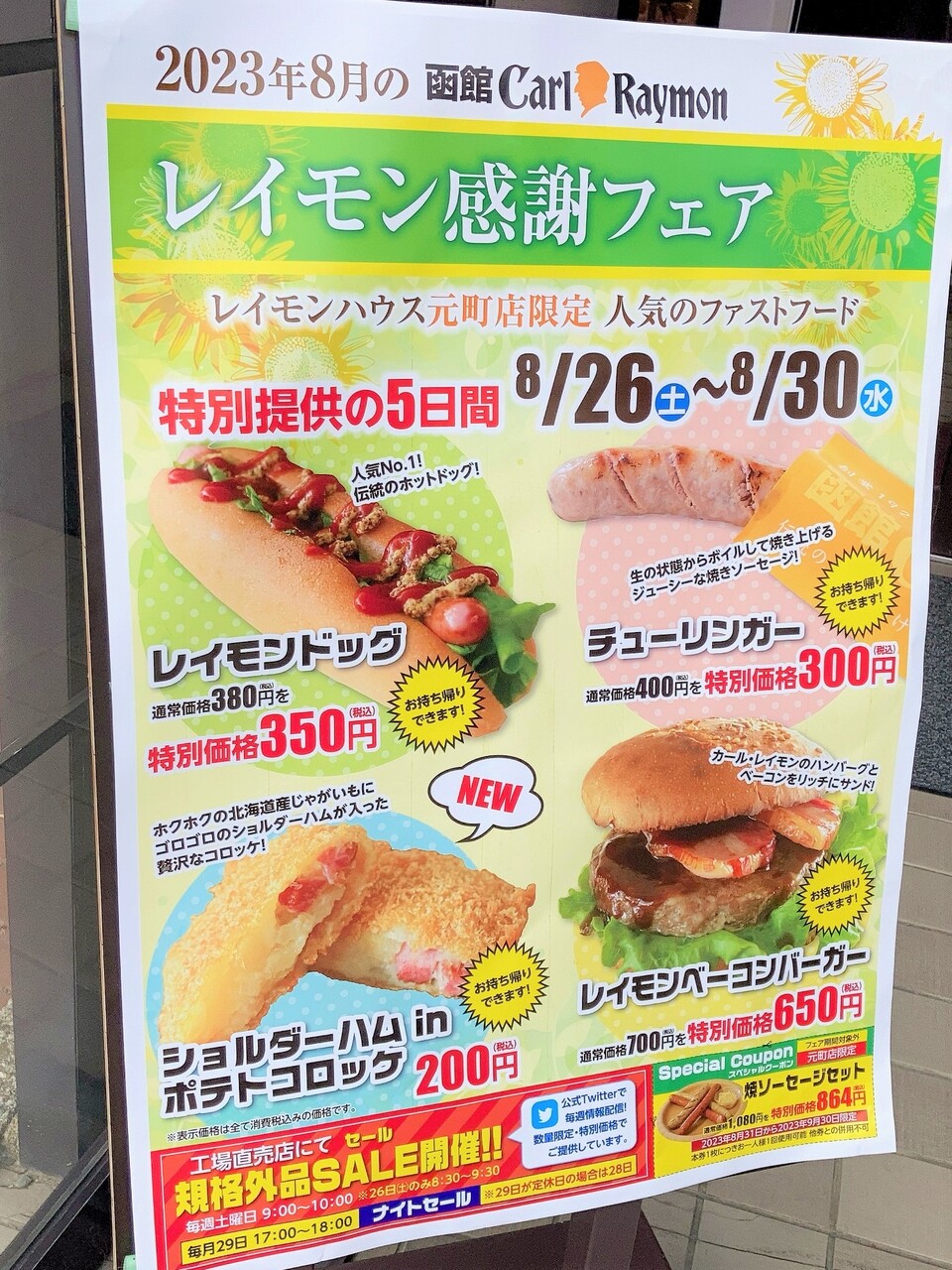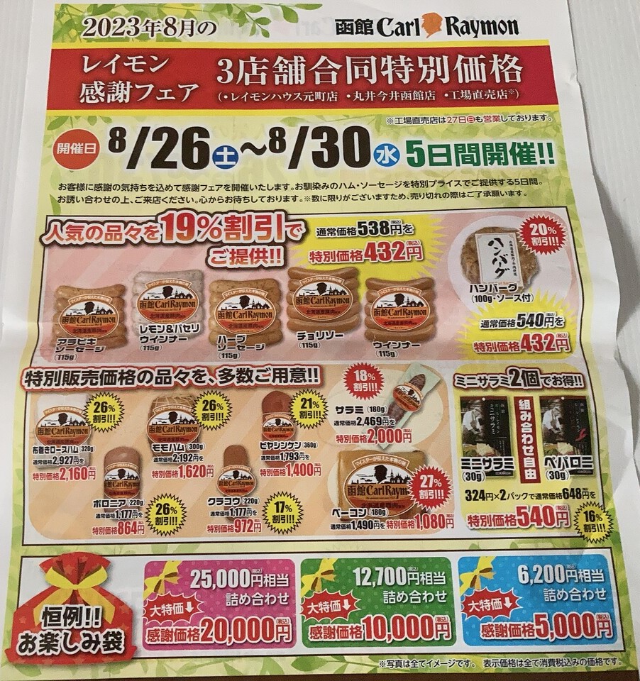 函館のカールレイモン3店舗でレイモン感謝フェアが開催中。