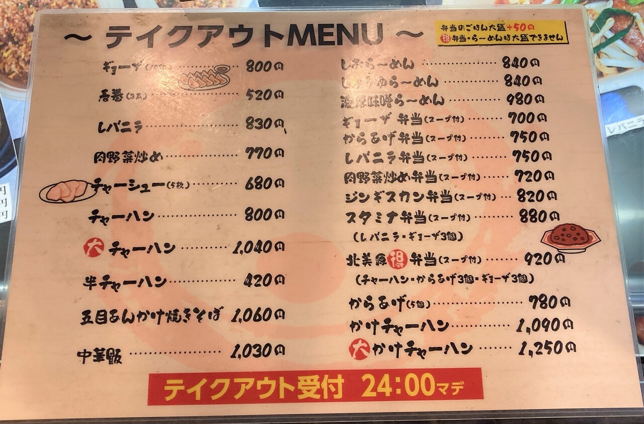 テイクアウトの受付も24時までなので、