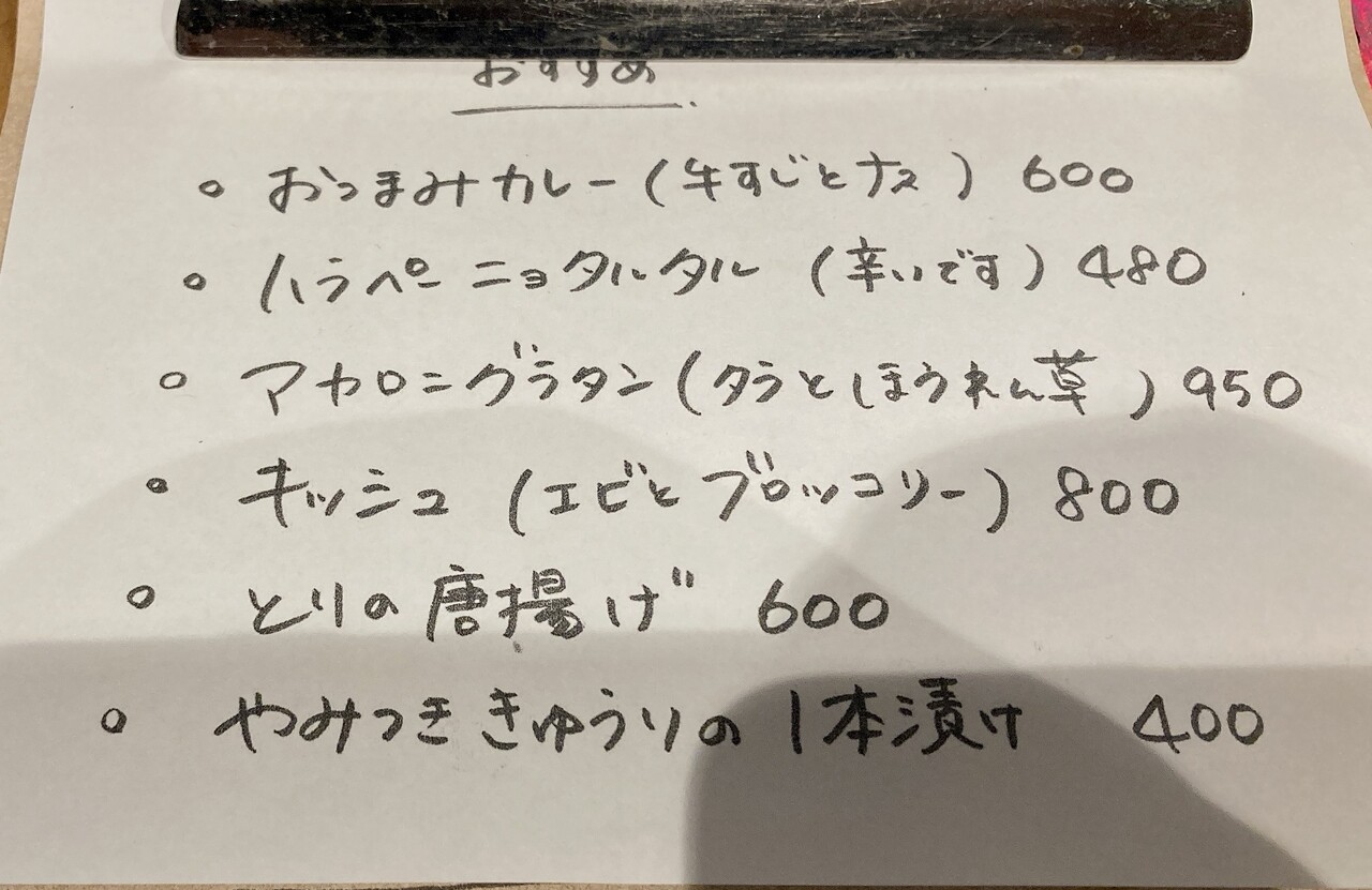 この日のおすすめメニュー。