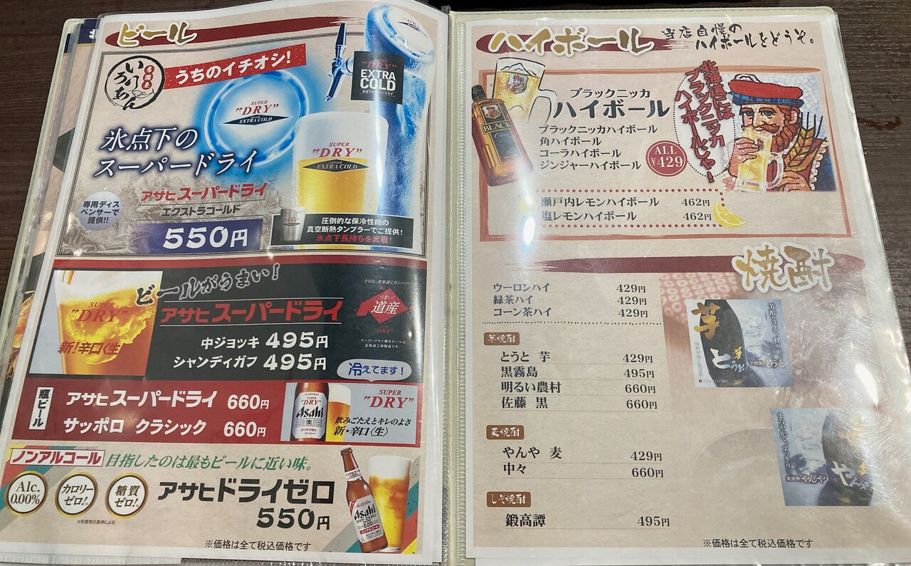 アサヒスーパードライエクストラコールド等が飲めるコース、