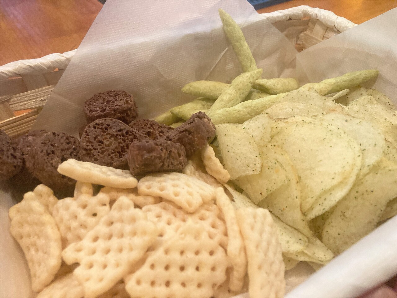 この時間の甘いもの、しょっぱいお菓子が嬉しい。
