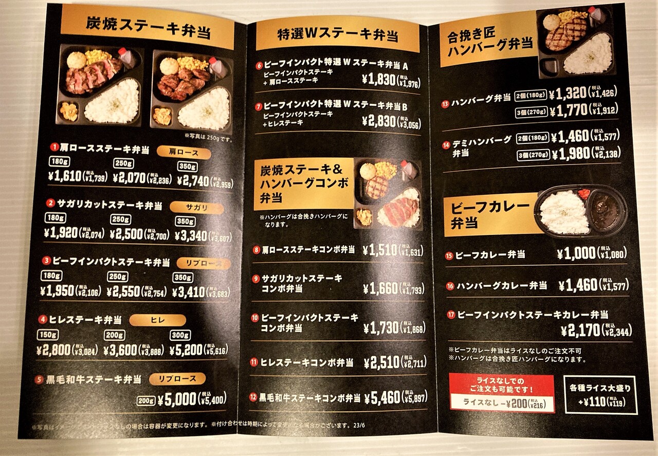 ビーフインパクトは、弁当のテイクアウトもやっている。