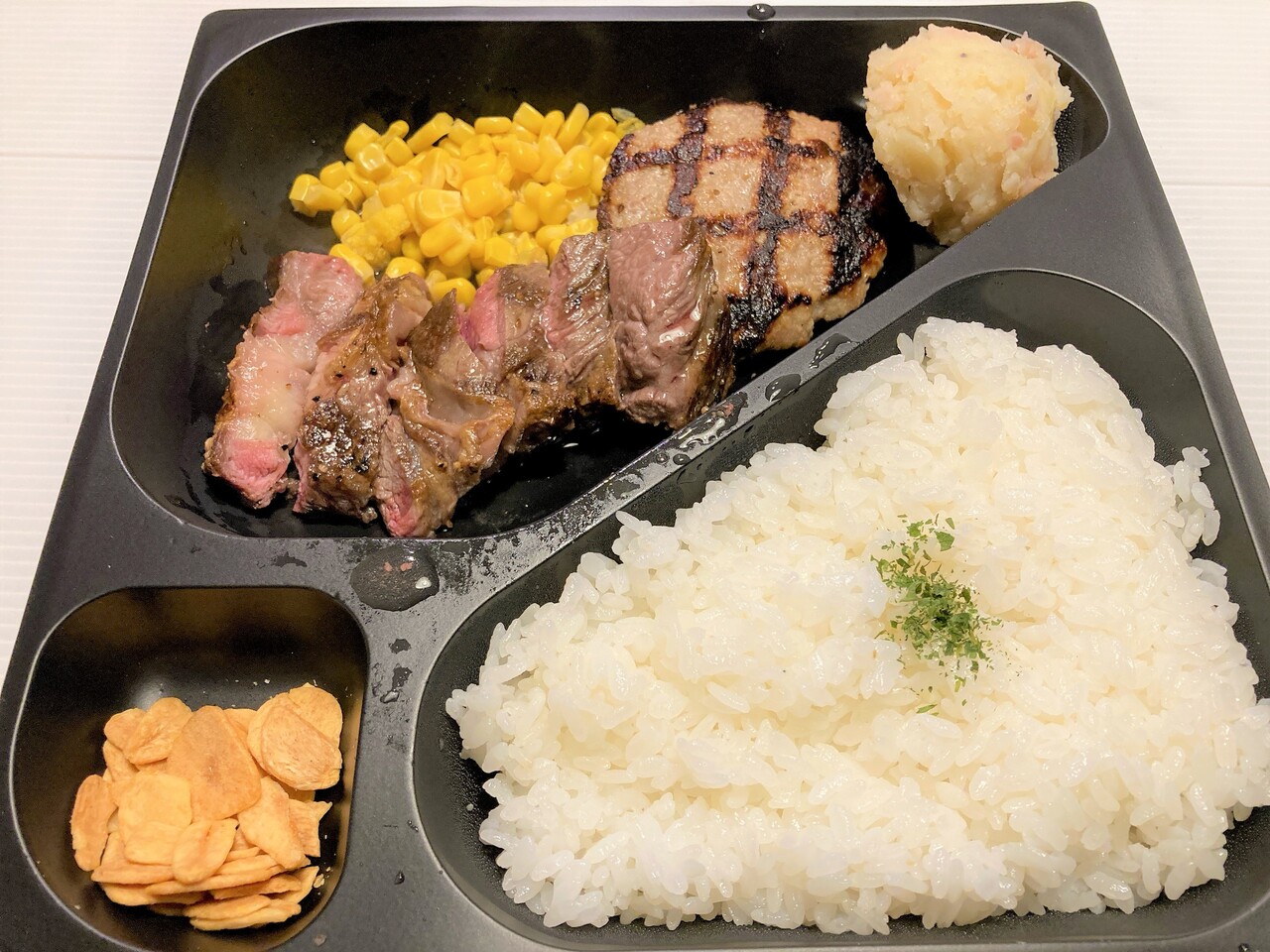 ステーキとハンバーグのコンボ弁当は数種類あるが、