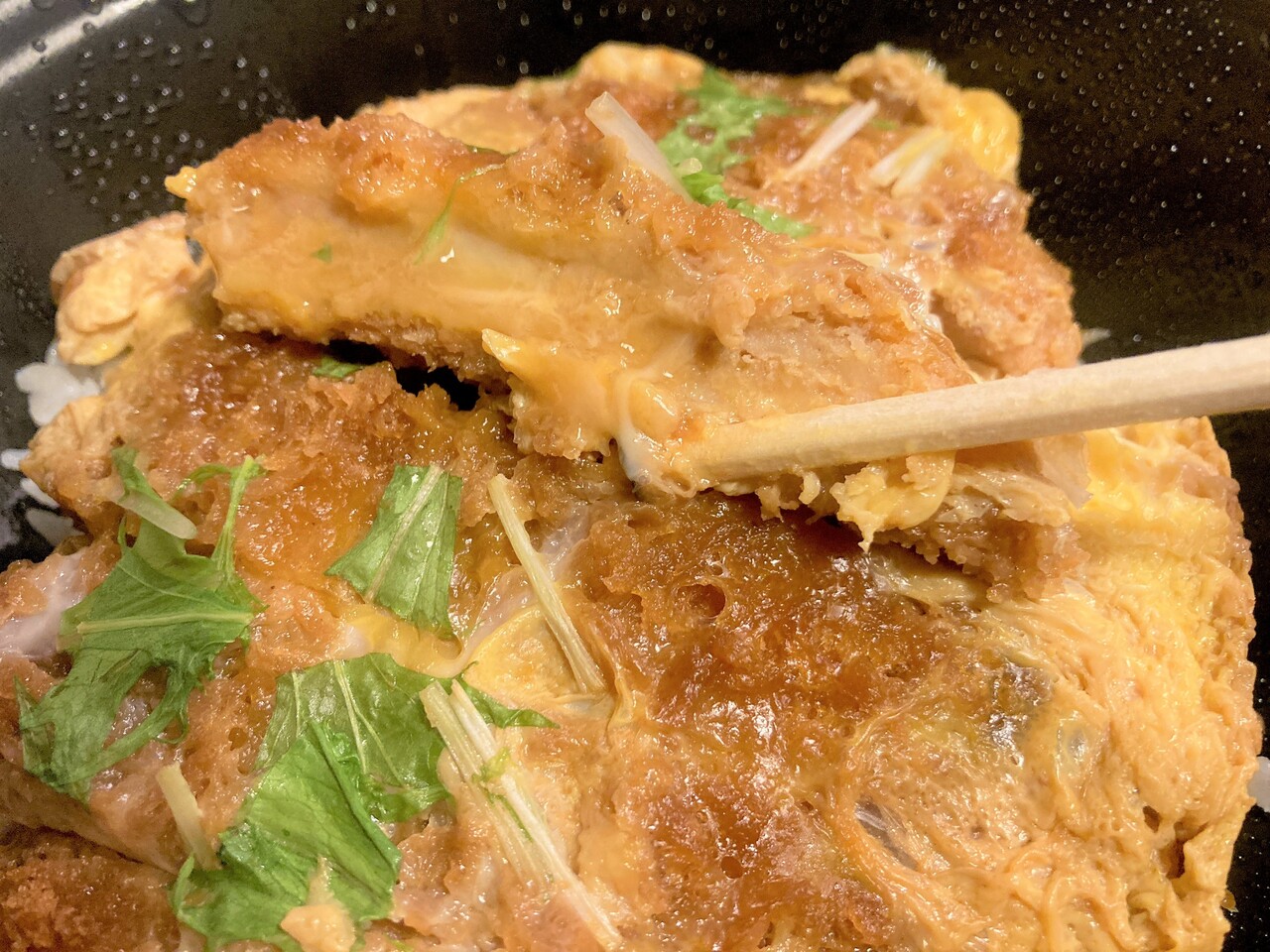 しいたけが入った カツ丼に、