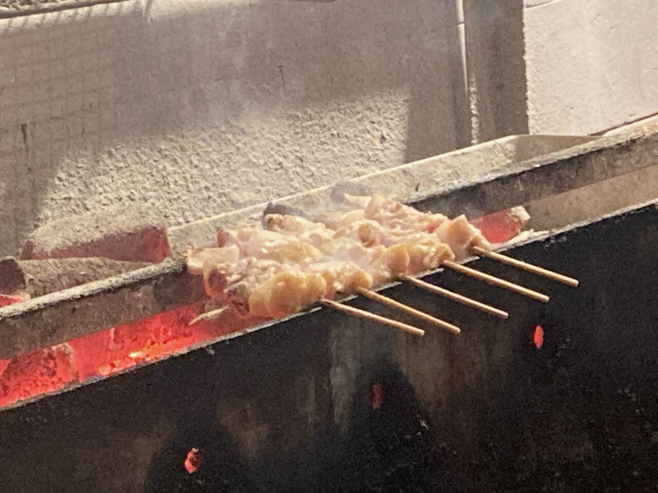 焼鳥がじっくり焼かれる図。