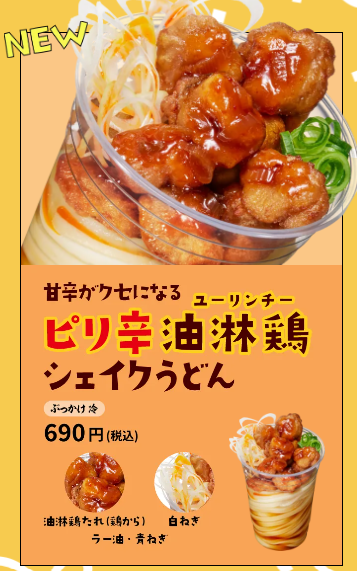 ・ピリ辛 油淋鶏シェイクうどんを引っ提げてきた。