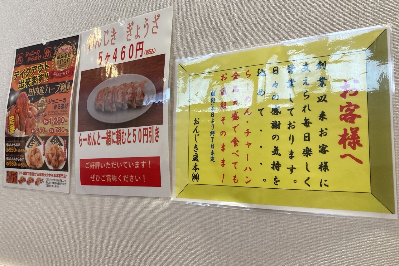 らーめん、チャーハンは大盛無料という、