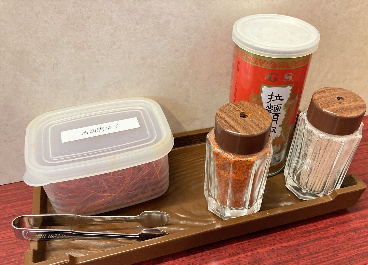 ラーメンの上に糸切唐辛子がのって出てくるラーメンはよくあるが、