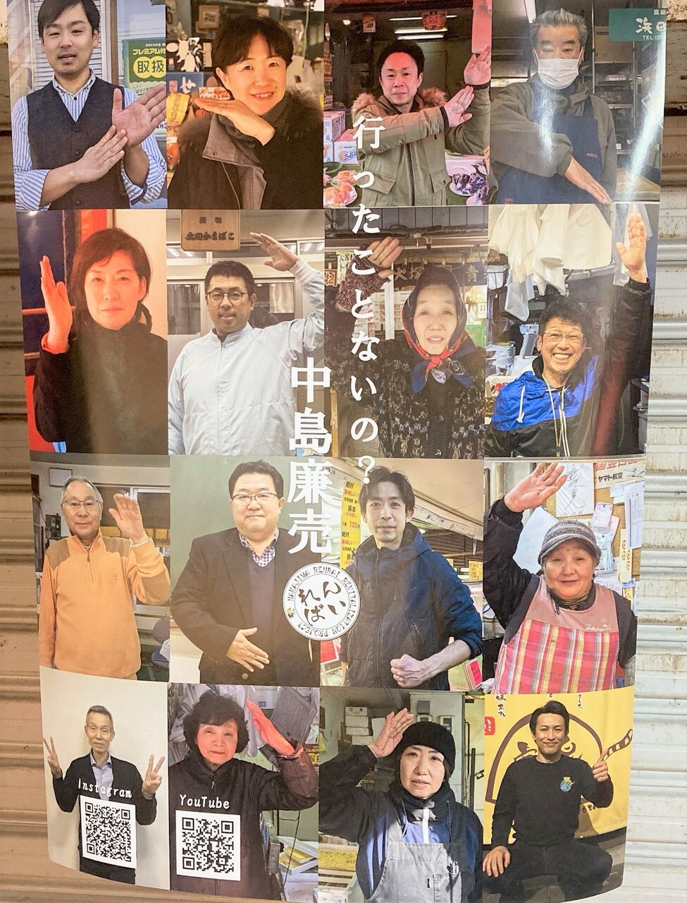 中島廉売の各お店の方々がポスターに。