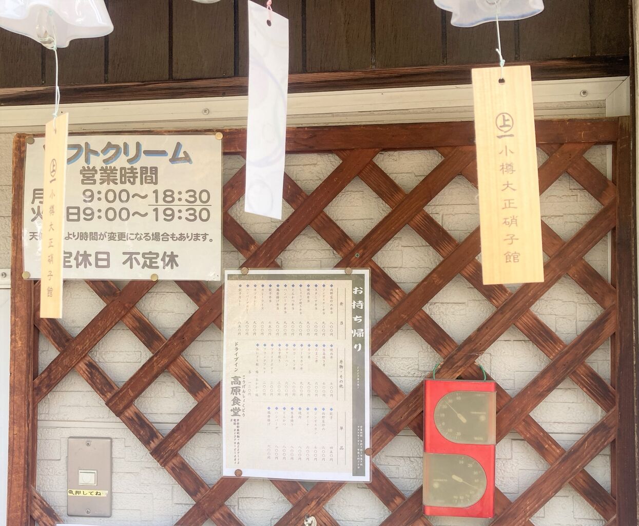 店前の風鈴が涼し気だが、実際は蒸し暑い。