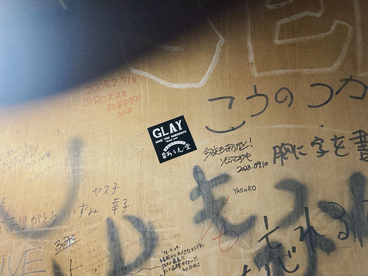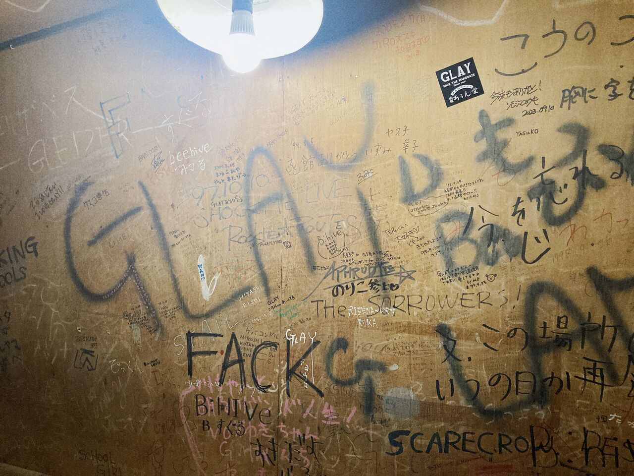 たくさんのバンドの名前が書き込まれ、