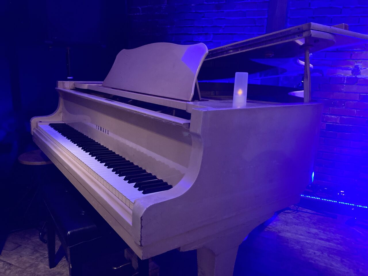 照明が青い。