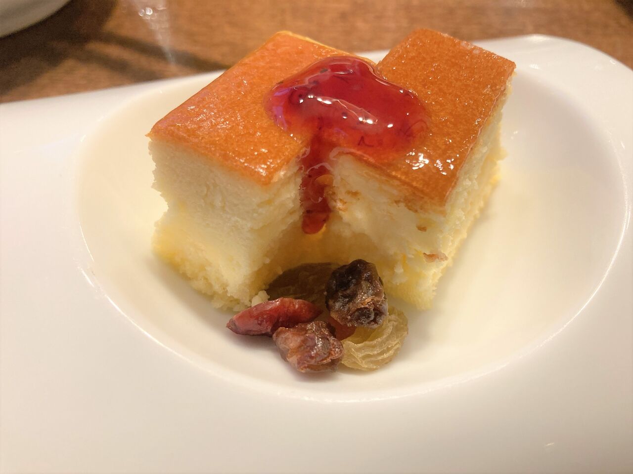 皿まで届いてしまいそうな柔らかチーズケーキ。