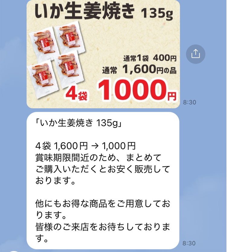 朝、トナミ食品の公式LINEからお知らせが来ていた。