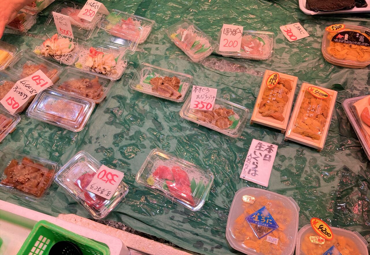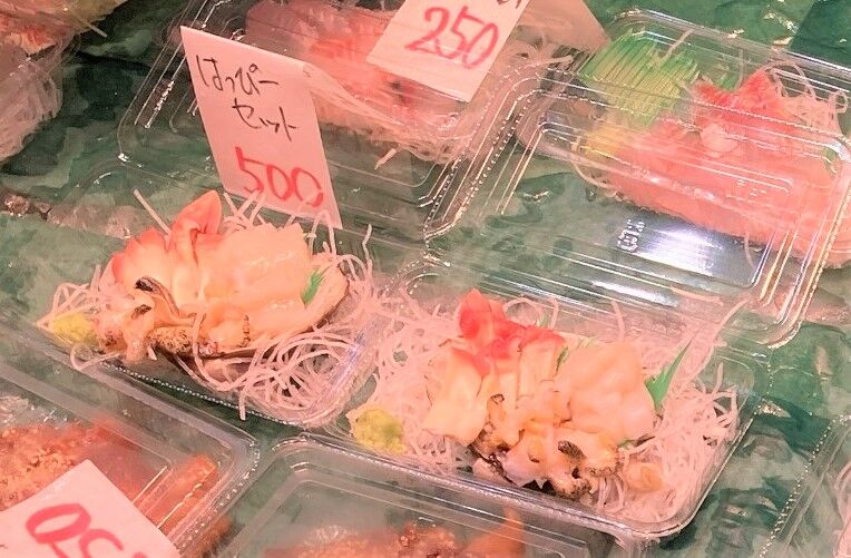 数種類買って皿に盛れば、刺身盛りの完成だ。