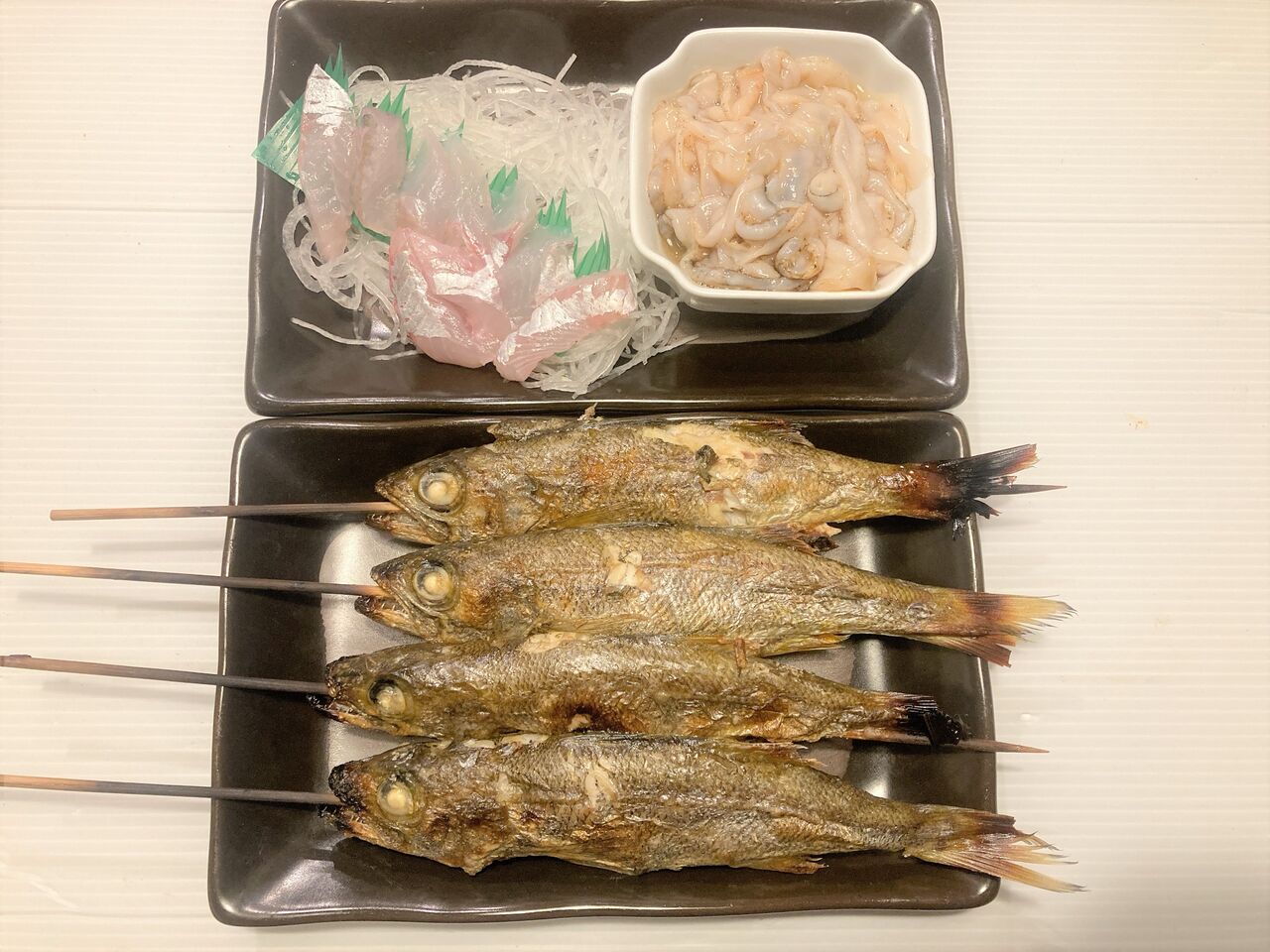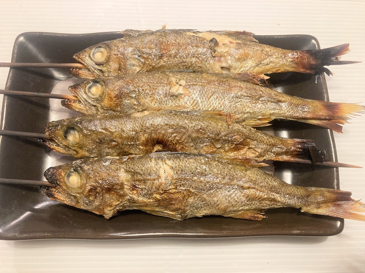 開いて一夜干しする元気もなく、串焼き。