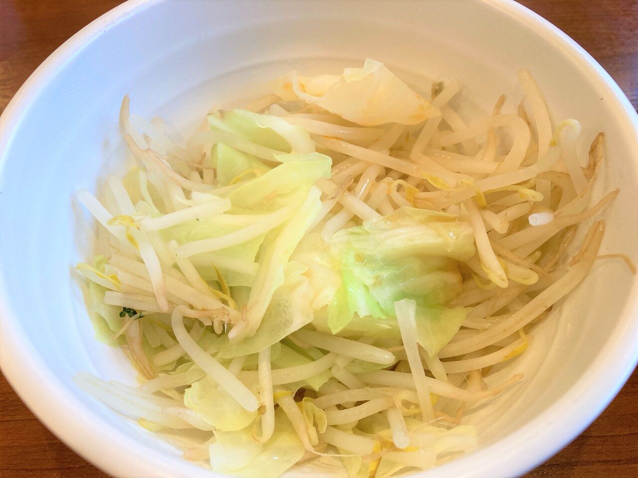 トッピングのもやキャベ 160円(税込)も別皿で準備。