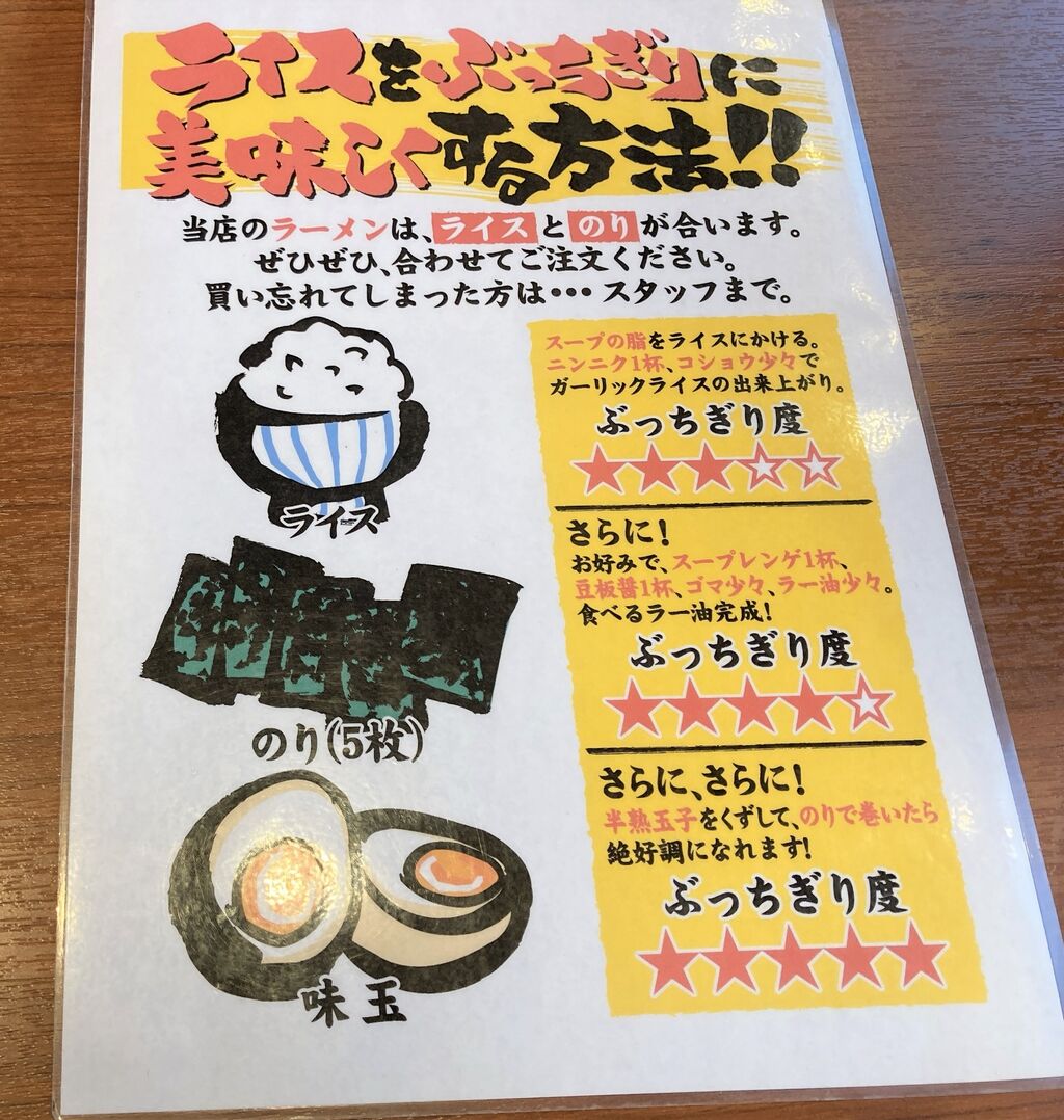麺の硬さ、味の濃さ、油の量は変更できないようだ。
