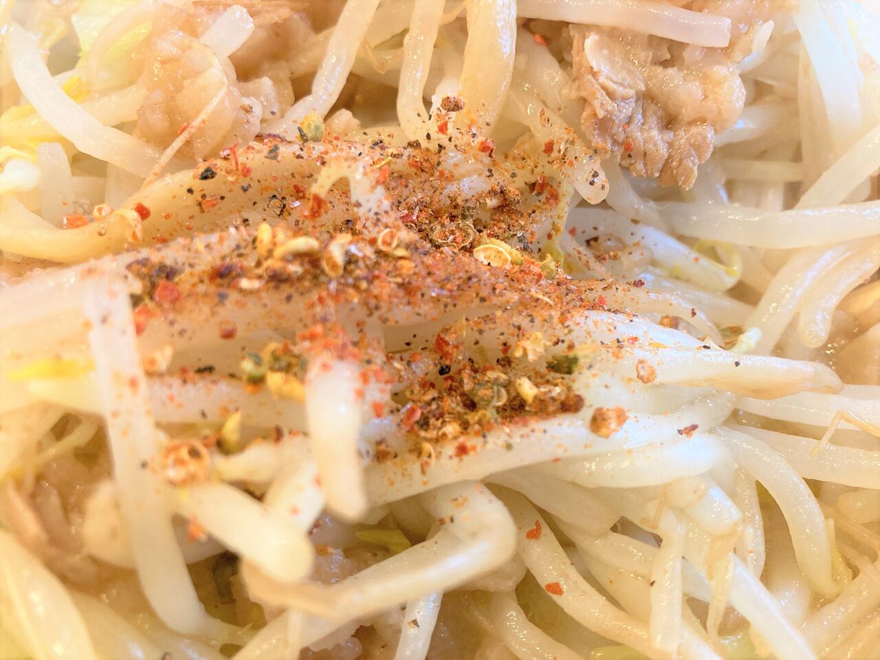 ラーメンの上にのせたもやキャベにかけて様子を見ながら。