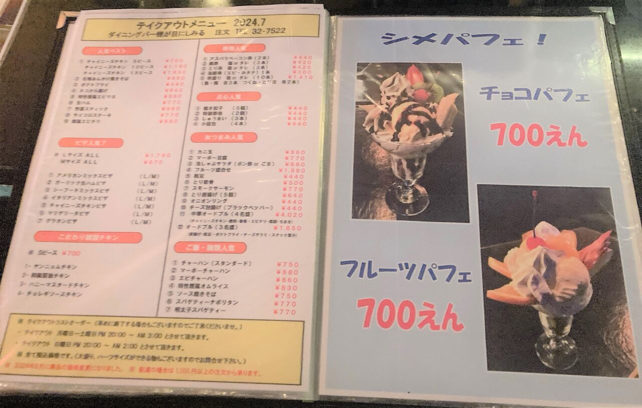 テイクアウトメニューもある。