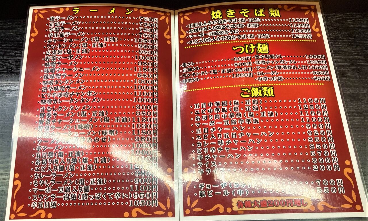各種大盛は200円増し。