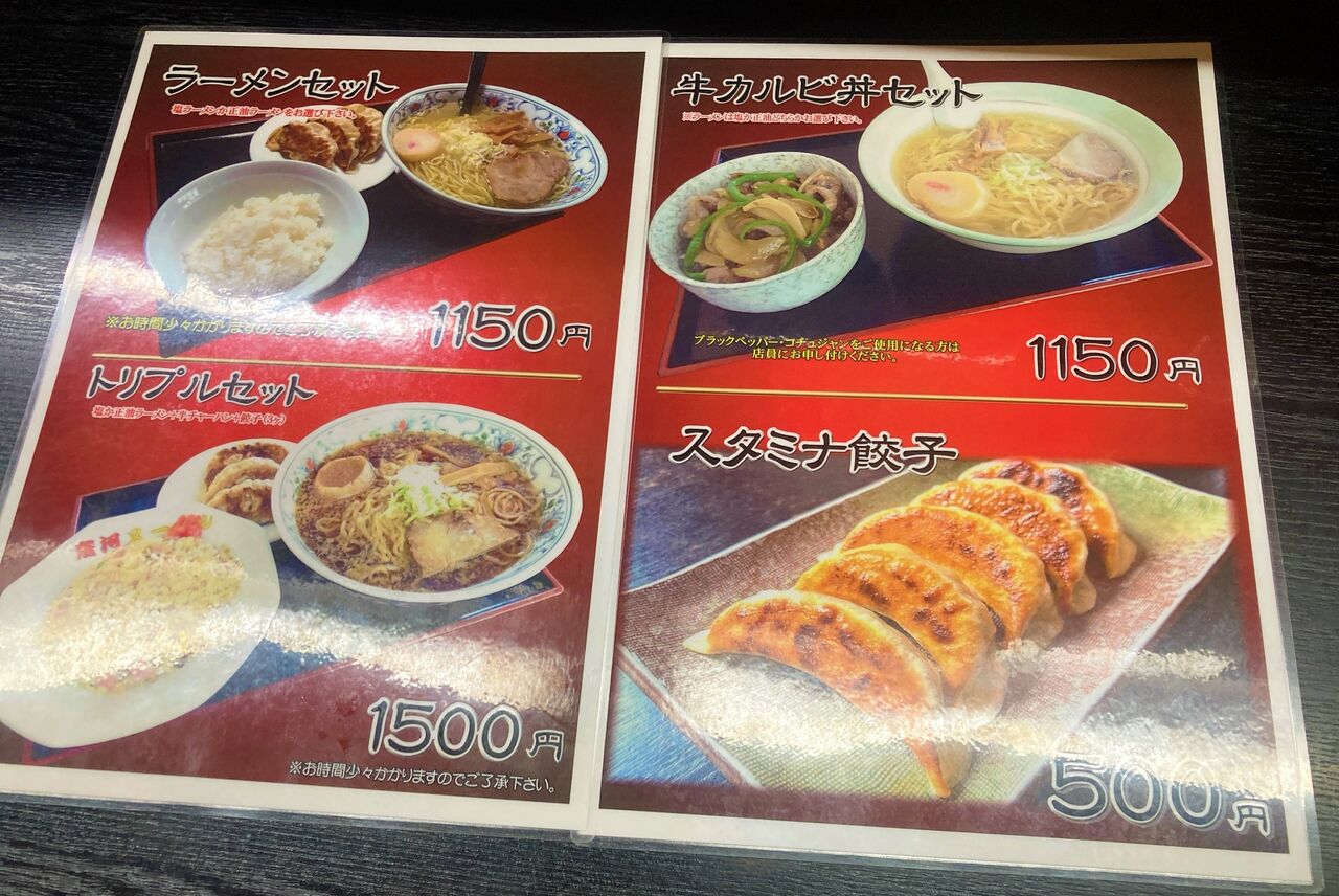 ラーメン、焼きそば類、つけ麺、ご飯類。