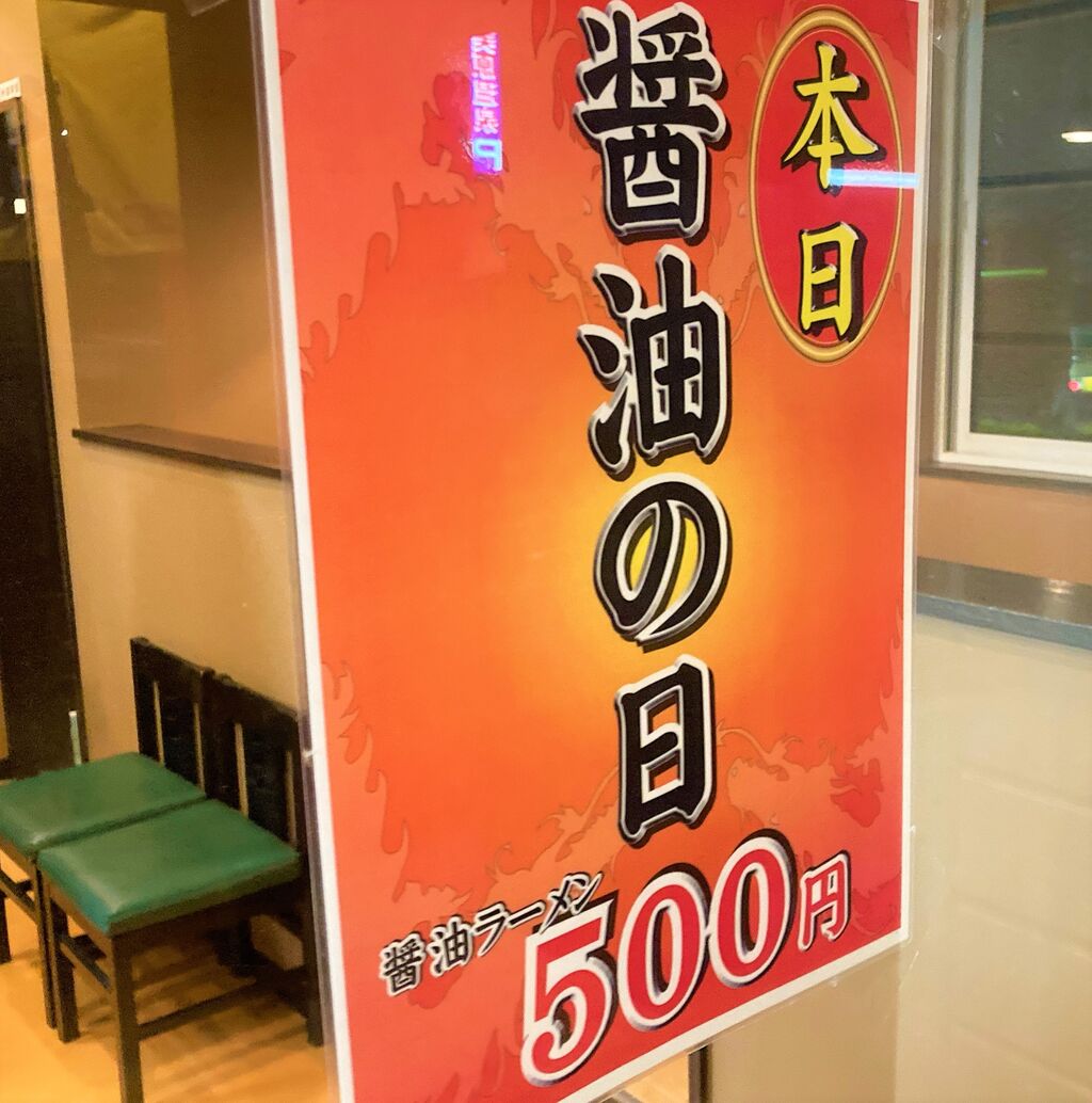 毎月20日は正油の日で、正油ラーメンが500円。