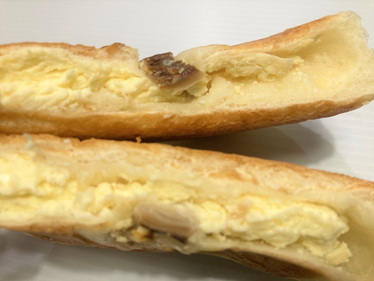 ホイップクリーム、カスタードクリームと一緒に包む。