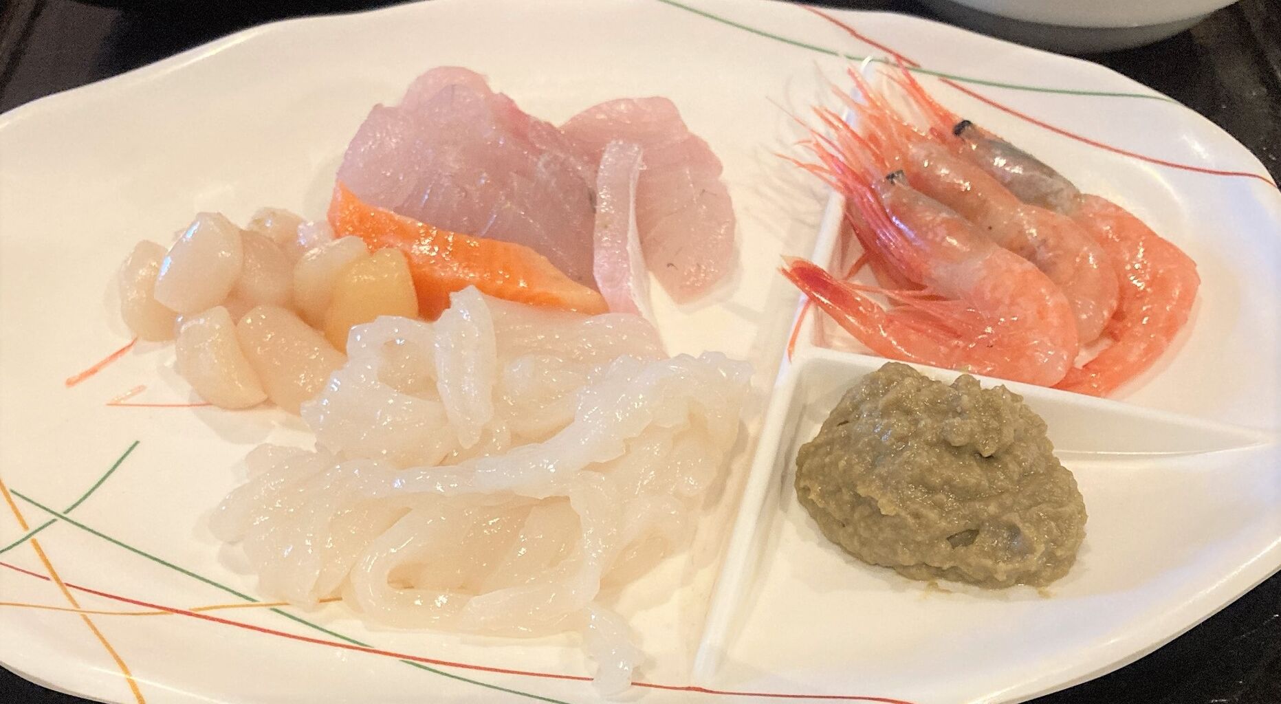 夕食バイキングに無かった、イカ刺しとエビ。