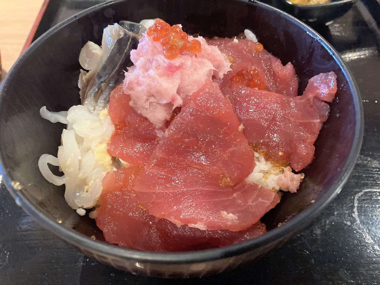 目に映るものを入れつつ、急いで作った海鮮丼。