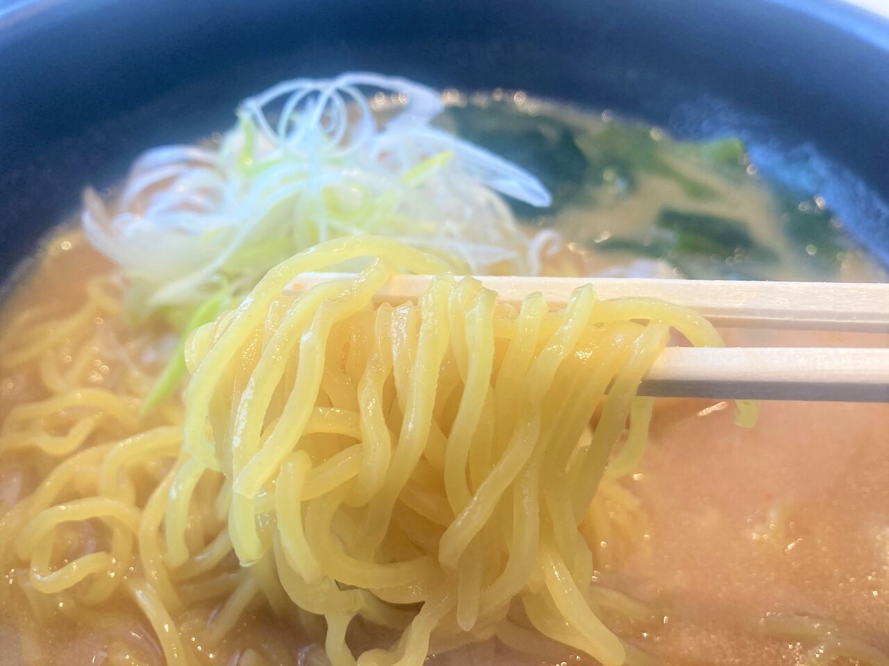 ネギ、メンマ、ワカメが入ったシンプル味噌ラーメン。