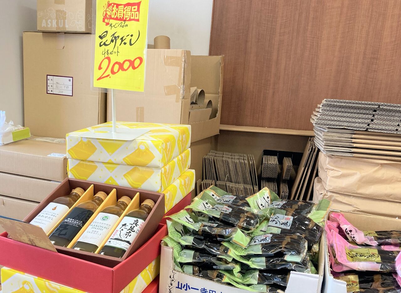 贈り物にも使えそうな、昆布だし4本セットが2000円。