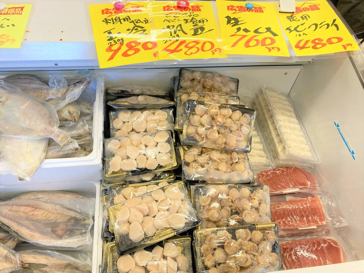 刺身用のホタテと、ベビーホタテに、エビフライ。