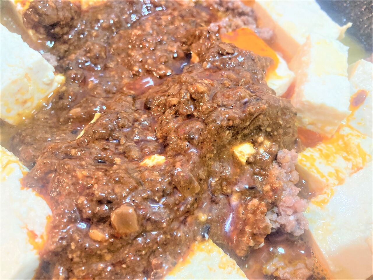 レストランの麻婆豆腐と同様、オイリー。