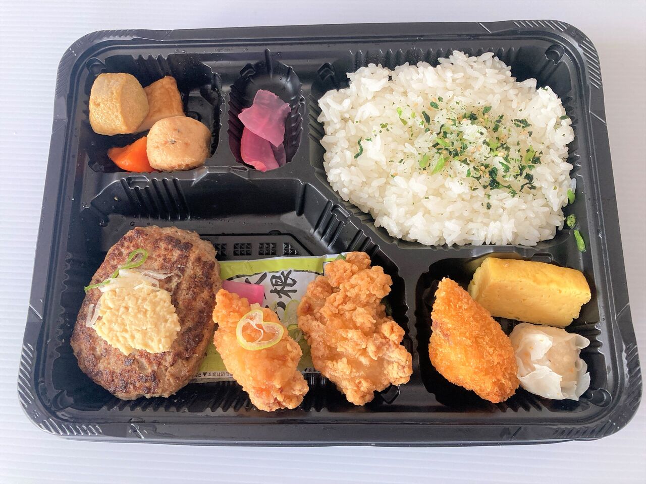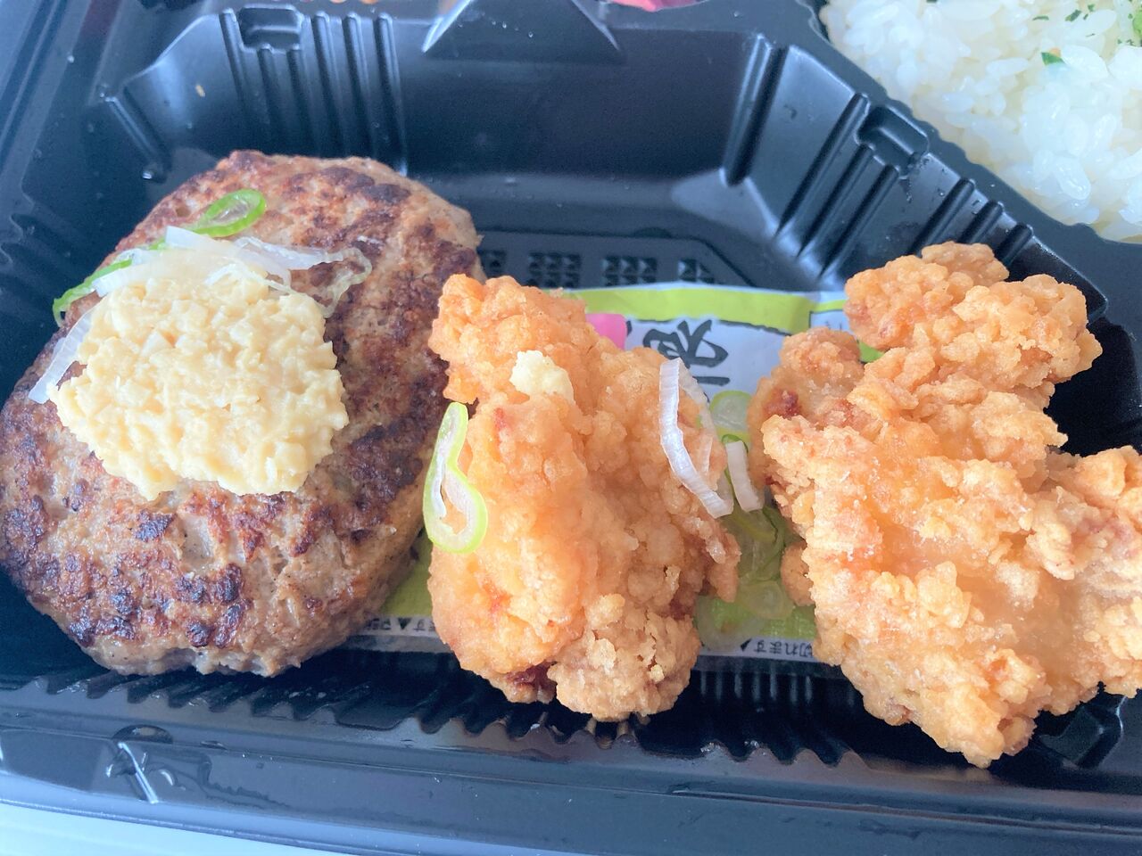 山わさびハンバーグと唐揚げの肉コンビがメイン。