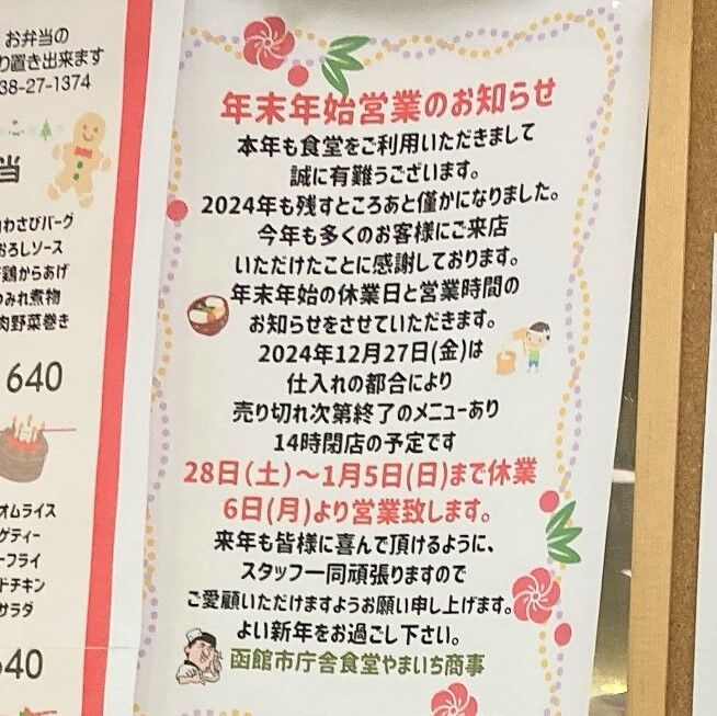 年末年始営業のお知らせが貼ってあった。