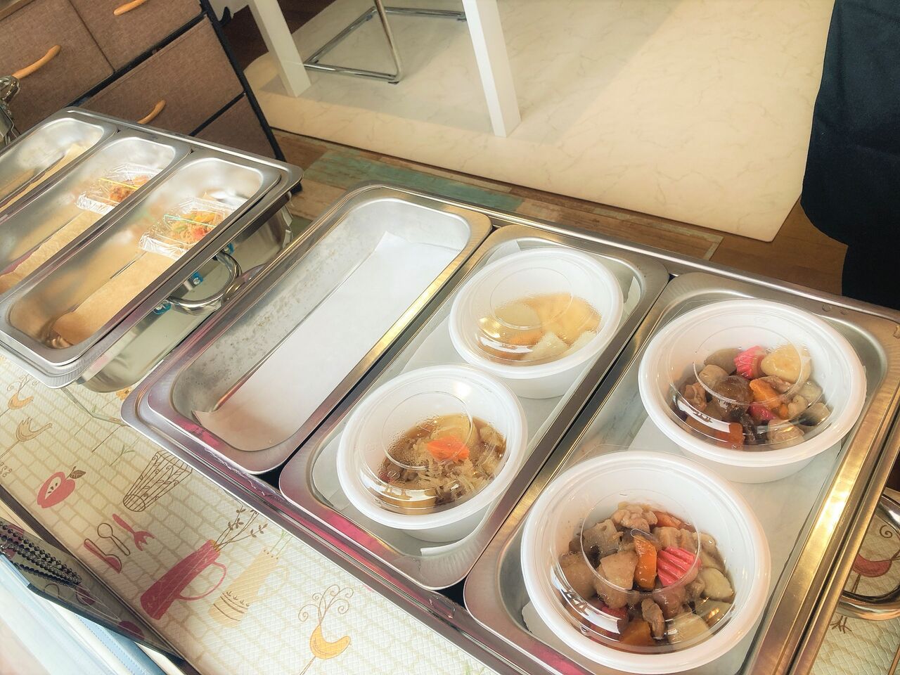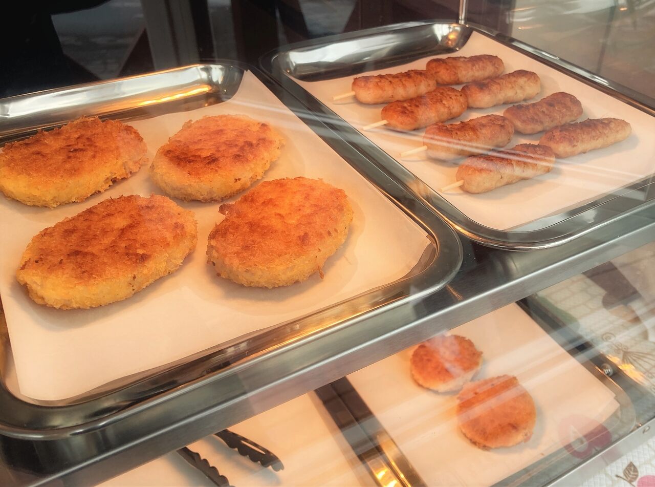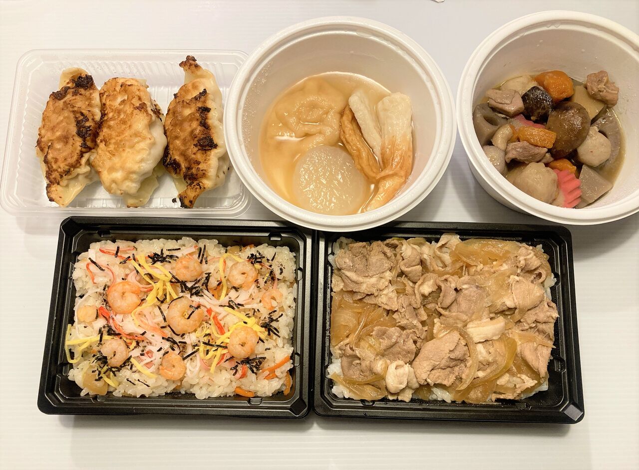 日替わりの100円の惣菜各種や200円のご飯物が並び、
