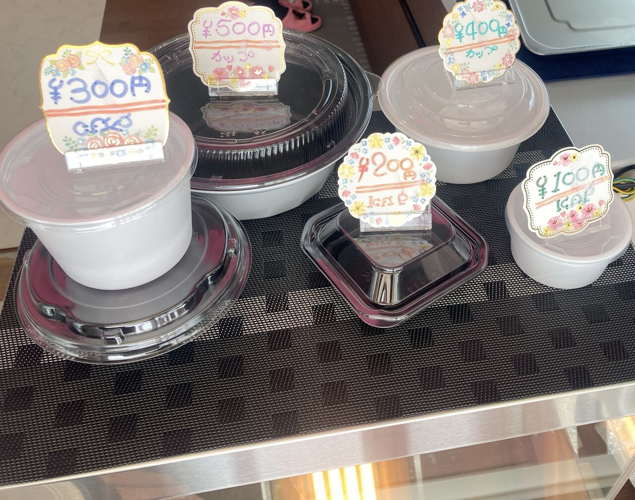 100円~500円までの5種類の大きさの容器を用意。