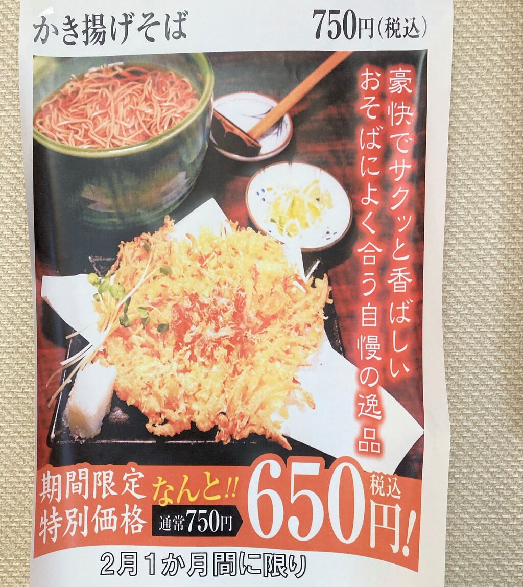 かき揚げそばが650円のやつ。