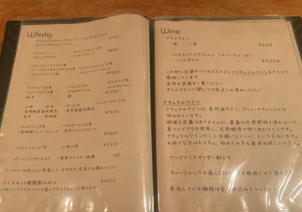 ウイスキーメニューには、